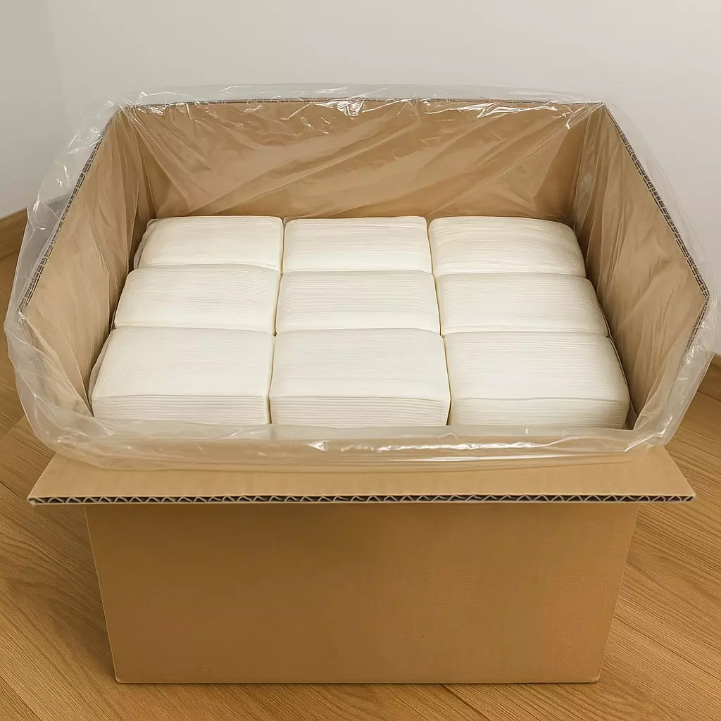 Porównanie oszczędności: objętość pojedynczego pudełka tylko 0,08 m³ (w porównaniu ze zwykłymi chusteczkami 4 objętości 0,12 m3), oszczędności przestrzeni do przechowywania 35%, koszty zamówień obniżone o 40% +.